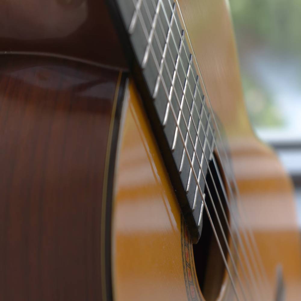 Den beruhigenden Klängen von klassischer Gitarrenmusik lauschen, während der Regen von draußen ans Fenster prassel.
